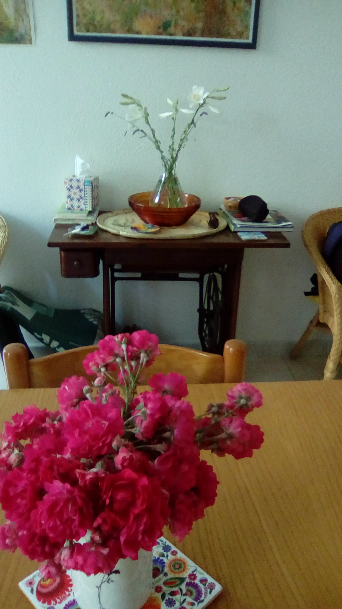 Sensazioni diverse da quelle cittadine mi assalgono e stemperano l’abitudine della monotonia. Le sorprese sono tra l’era, tra melissa fiorente, rosmarino profumato, rose d’amore e cascate di roselline. I canti di certi uccellini queruli che disturbano Stefania mentre prova le polacche e i valzer di Chopin che suonerà a Postdam.