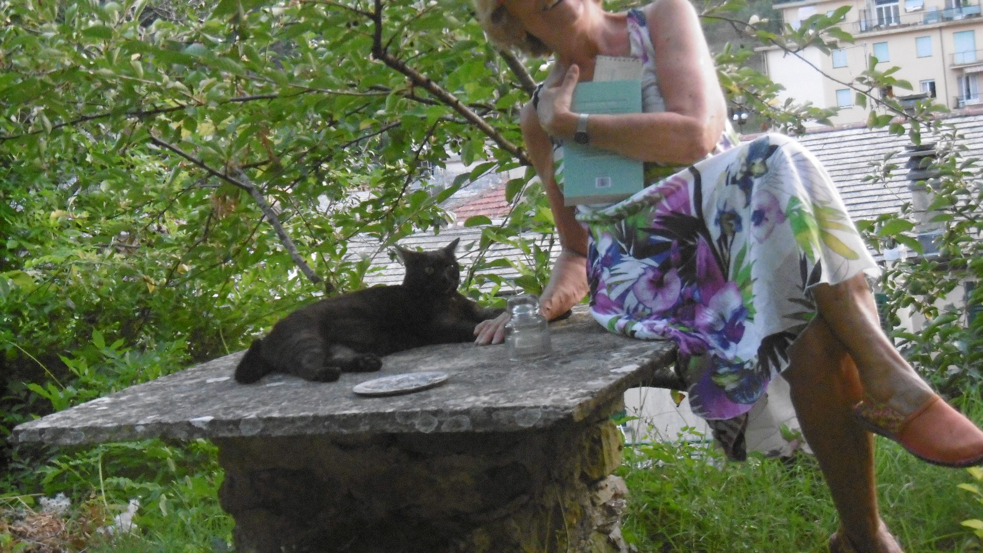 Abitando al pian terreno e tenendo spesso la porta aperta per lasciare entrare e uscire i suo tre gatti: Â due neri e muti – Paolo e Giulio, una bianca