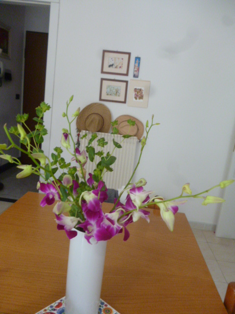 Lascio la lettura o la tisana e salgo ad innaffiare dalie e rose e belle di notte ; Mimilla mi segue, vuole che sia io a darle l’erba gatta da rosicchiare (sì, è molto viziata!).