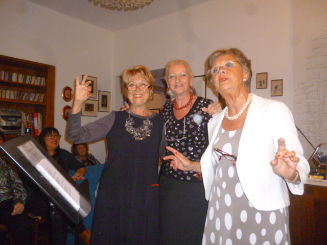 Serate uniche, particolari, nate da un’ idea sua e delle sorelle  più di trent’anni fa: radunare a sera  signore e signorine, che si dilettino sì di cucito, ricamo e gastronomia, ma anche  di arte, poesia, musica, canto,  teatro e … soprattutto  di gusto del sorriso condiviso.
