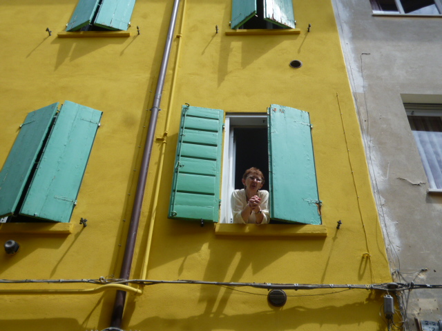 Ma è magia il fatto che la nostra stradina che iniziamo dal fondo sia deserta? ( O è perchè è ora di pranzo?) Mentre rievochiamo i vari personaggi da Radames alla Palamede  ( questi i nomi emiliani del tempo!) ecco apparire ad una finestra  una signora (come la servetta della Fata Turchina che apriva a Pinocchio) che si mette ad aggiornarci sugli abitanti del passato remoto, prossimo e del  presente.