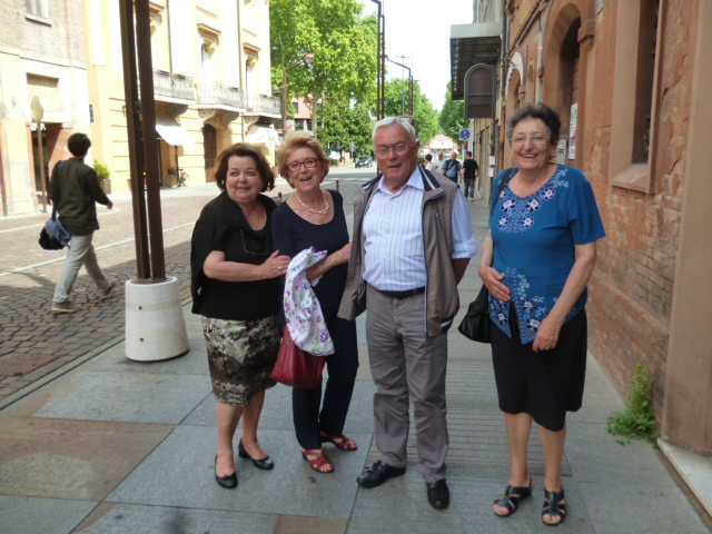 Nel cuore della cittadina c’è il ristorante STUBAI dove mangiamo benissimo antipasti di salumi vari, con pane caldo e poi tortelloni alla zucca, zuppa inglese, il tutto innaffiato da un delizioso lambrusco che scivola allegramente come “le parole fra noi leggere” e i nostri ricordi. Nel frattempo ci hannoi raggiunto