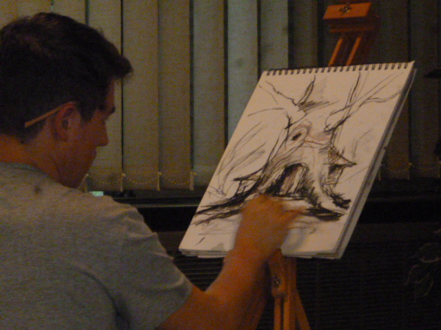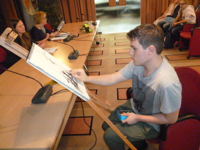 E il talentuoso Filippo Vinante ha disegnato “in diretta” uno dei suoi alberi magici che illustrano il testo, raccontandoci poi come il disegnare lo fa sentire vicino a suo padre, scomparso troppo presto, e come riesce a colorargli la vita e i ricordi.