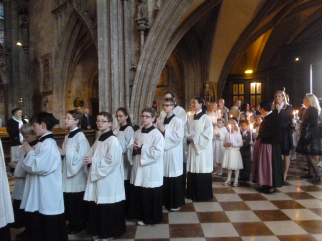 sempre a piedi attraversando Karsplatz, la Staats Opera percorrendo  la effervescente Karntner Strasse fino a St.Stephan. Entro e sono accolta dalla meraviglia gotica delle sue navate, dalla musica dell’organo e da una deliziosa processione di bambine in attesa della Cresima.
