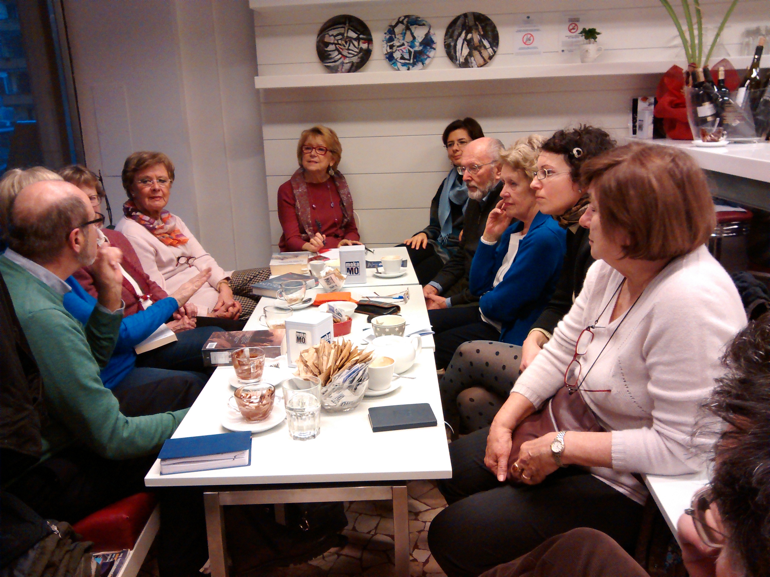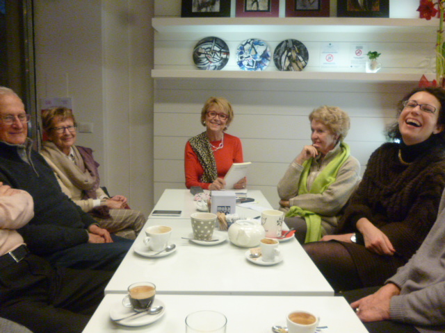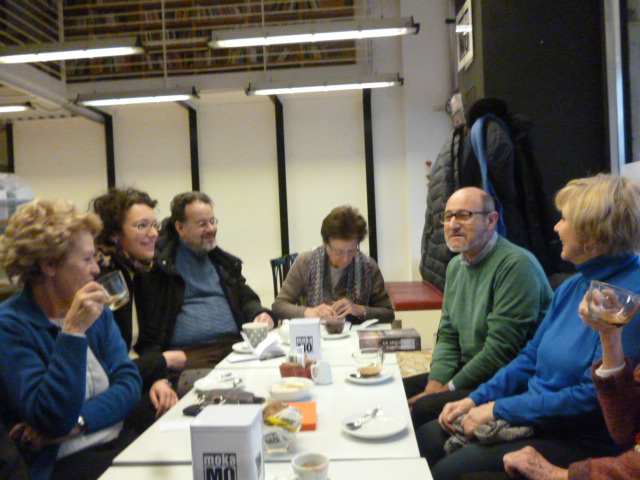 Gruppo effervescente dunque!  Coerentemente ciarliero e vivace, eterogeneo sia per genere che per per età . C’erano anche le giovani Maria Grazia e Stefania e i nostri consigli e impressioni si dipanavano in un crescendo allegro tra una tazza di cioccolata o di caffè e i biscottini offertici  da Erika e Bradi.