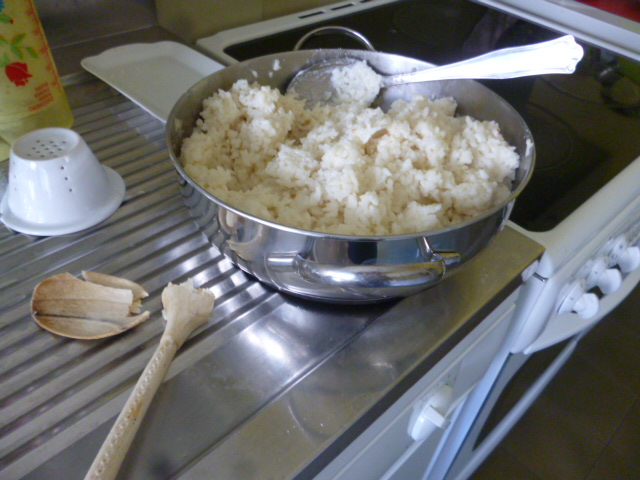 200 gr di riso bollito in 1 litro di latte con scorza di limone.Quando raffreddato si aggiungono 150g di zucchero e 50gr
