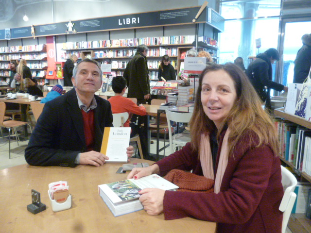 Mi accomodo accanto a una  gentilissima coppia che sfoglia altri libri. Non si può dunque non  parlare di ciò che si ha accanto. Lui ha un libro su Jack London fotografo quindi entrambi ci meravigliamo perchè non sapevamo che il grande scrittore si dilettasse di fotografia. Lei ha un bel volume di ricette, io l’ultimo romanzo  dello psichiatra  Irvin D. Yalom  “Creature di un giorno .E altre storie di psicoanalisi.”