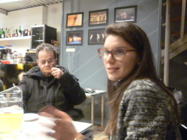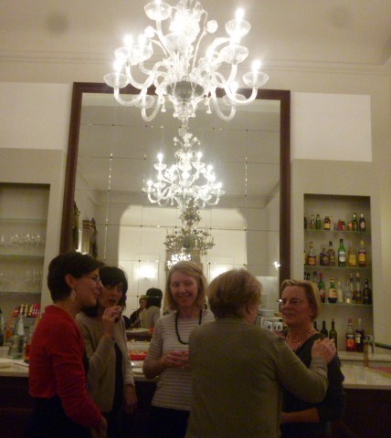 Il pomeriggio prima del concerto ci ritroviamo al Bar del Teatro Zandonai  (luminosità , chiare pareti, specchi , tendaggi verdi, ritratto di un Asburgo dal mento lungo, eleganza ) per i “Momenti Musicali” Incontri con