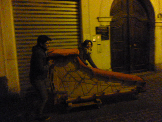 Il prezioso e delicato ma  tutto sommato piccolo fortepiano, rotolava sui ciottoli e sui marciapiedi.