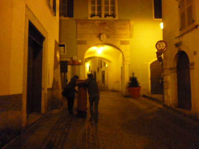 Aria fredda, uno spicchio di luna crescente, curiosità dei pochi passanti, leggero rumore di ruote – quasi musicale anch’esso? – quando finalmente lo strumento che ci ha regalato suggestioni coinvolgenti ritorna a riposare ben avvolto