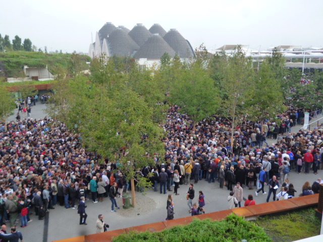 Quasi tutto dall’esterno per me…io mi rifiuto di fare più di una fila. Già quella dell’ingresso è stata lunga mezz’ora e mi era bastata. Mi sono persino adeguata a mangiare la polenta al piccolo padiglione trentino (!) pur di non fare file per