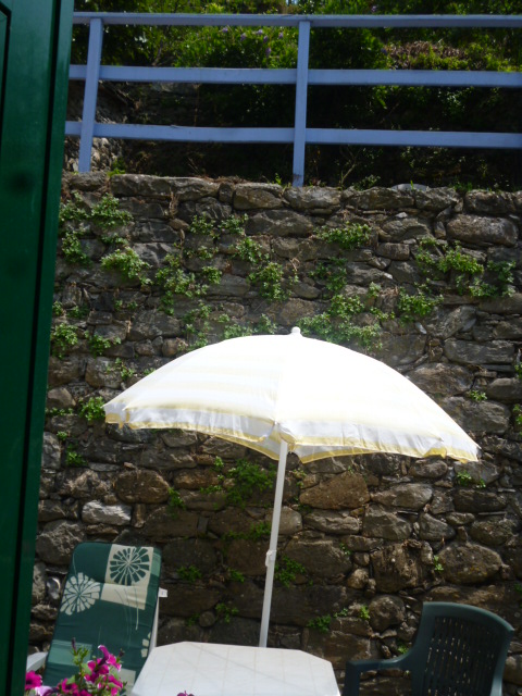 La mia terrazza è appena fuori dalla cucina, alle spalle c’è un muro montaliano