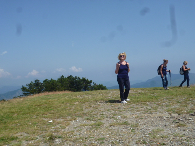 Sì, proprio questo nome per un monte di 1200 mt dalla cui cima si ammirano il Monviso e altri monti e la baia di Portofino. Bellissima escursione tra boschi magici di luci ed ombre e sentierini assolati di margherite e fiori azzurri. Tre ragazze con lo zaino (Grazia, Maria Rosa ed io) felici della camminata e delle risate che giunte al rifugio mangiano polenta e tagliere di salumi. E’ il colmo!