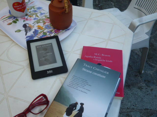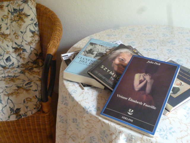 E così lentamente il caldissimo luglio è giunto alla metà : la mia terrazza è sempre una “terrazza Martiniâ€, viene Grazia, sale Alketa, si parla da lì con il vicino. Con Francesco, durante i lavori, nella pausa dell’aperitivo si parlava di libri.