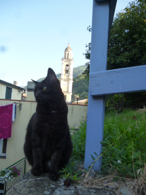 Riconosco sempre sia le stanze che il giardinetto di Borzonasca  e soprattutto riconosco il vicino che mi piace tanto. E’ tranquillo ed ha l’orto molto più curato del nostro: terra vangata dove rotolarmi, piante di lamponi in cui nascondermi, prato profumato di maggiorana, timo e rosmarino. E poi lui mi chiama “Miciaâ€.