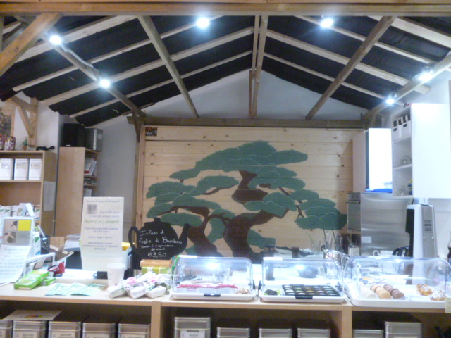 caldo. Assaggiamo anche i dolcetti di riso regalatici da Carla-“Turchese”, e beviamo il tè speciale freddo offertoci da Eleonora che insieme al marito sa creare  un’atmosfera piacevolmente Zen in questo loro teatro del Tè.