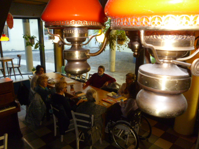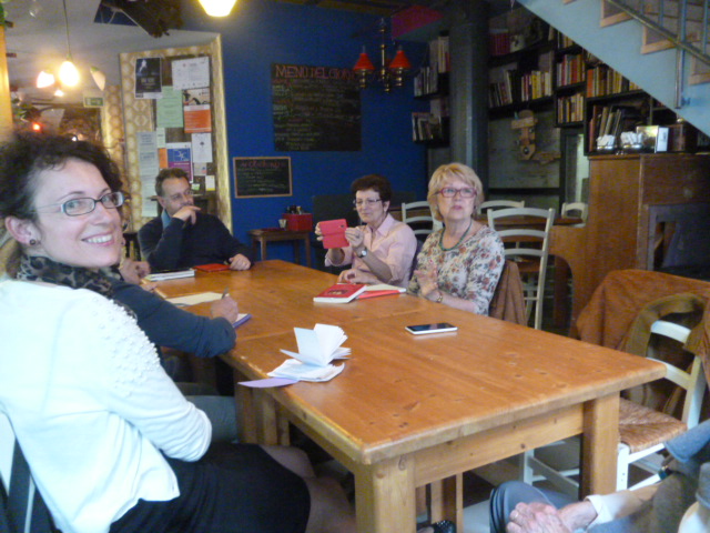Anche ieri il nostro gruppo si è riunito nella bella atmosfera del Café de la Paix  che rimpiangeremo amaramente. Fra l’altro il pomeriggio d’aprile ci regalava un’atmosfera verde e tranquilla: le tisane e i caffè sul tavolo, i libri sfogliati e letti. I titoli nuovi e vecchi che si rincorrevano sulle nostre labbra.