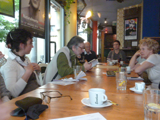 Intorno ai nostri soliti tavolini e davanti a un caffè o una tisana  l’atmosfera cordiale e  attenta si riscalda grazie anche alla simpatia dell’autore