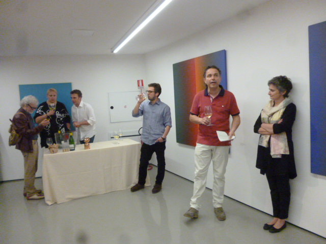 degustazione consapevole di parecchi ottimi vini. Con un’attenzione sempre centrata sulla profondità del colore, sulla  luce, sulle  sensazioni e  percezioni. Ad ogni gruppo di lavori un abbinamento perfetto: possiamo dire che riuscivamo, grazie alle spiegazioni di Giovanna e di Italo, a “bere” i colori e le linee!