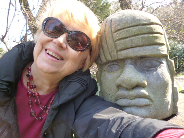Scopro panchine e seggioline ed allora mi siedo felice sotto il sole tiepido e ammiro stormi di uccelli che volano su di me, scopro una parte di piante esotiche con una statua di un Olmeco…mi fotografo con lui , poi mi risiedo. Sono felice, sono me stessa.  Insomma ho trovato per un po’ un centro di gravità permanente. Uno spazio che faccio tutto mio e un tempo