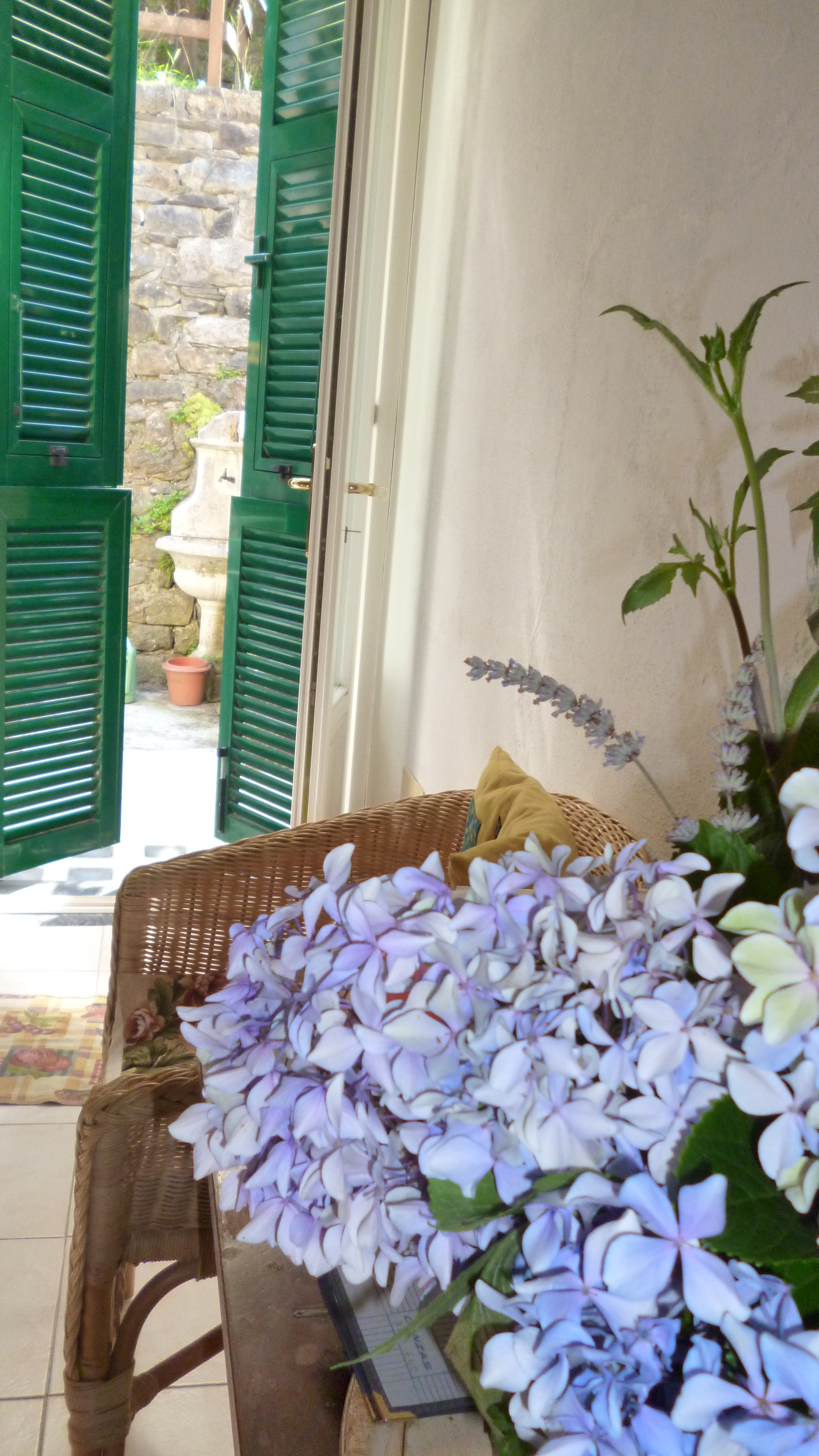 La promessa di glicine e  di sole le porta dunque in un angolo ligure che rappresenta la voglia di vivere, l’abbandonarsi alla natura in fioritura.