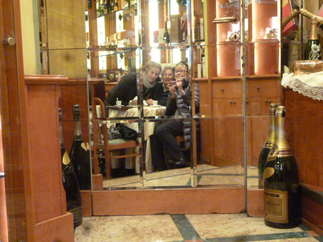 Abbiamo riso come ragazzine in pasticceria, Bianca, Sandra ed io, giocando con le nostre immagini riflesse e lasciandoci  cullare dall’atmosfera calda, frizzante, profumata di caffè e pasticcini. Spazi di tempo come un quadro perchè racchiusi in una cornice deliziosa di convivialità e consonanze.