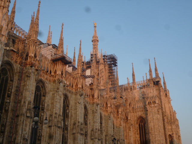 Milano è energia, fretta pulsante, curiosità , una scarica elettrica per me dopo le ultime settimane languide  trascorse in gran parte sul sofà a studiare e a  leggere. E poi il sole del pomeriggio non scende così in fretta come a Trento. Anche dopo le 16.00 il Duomo è colorato di rosa e mi mette allegria e una speciale aspettativa per Chagall, surrealista, simbolico, volante, onirico.