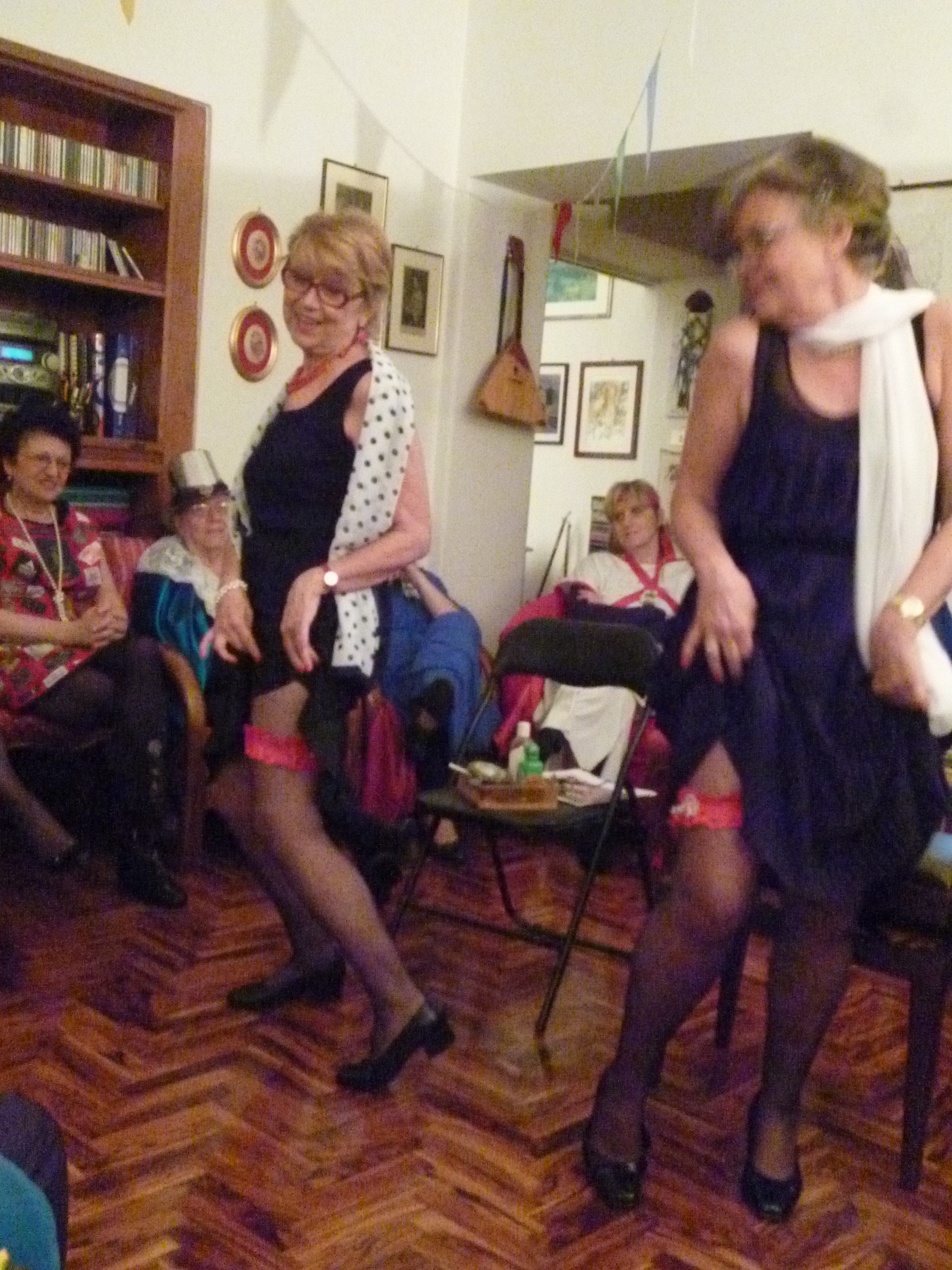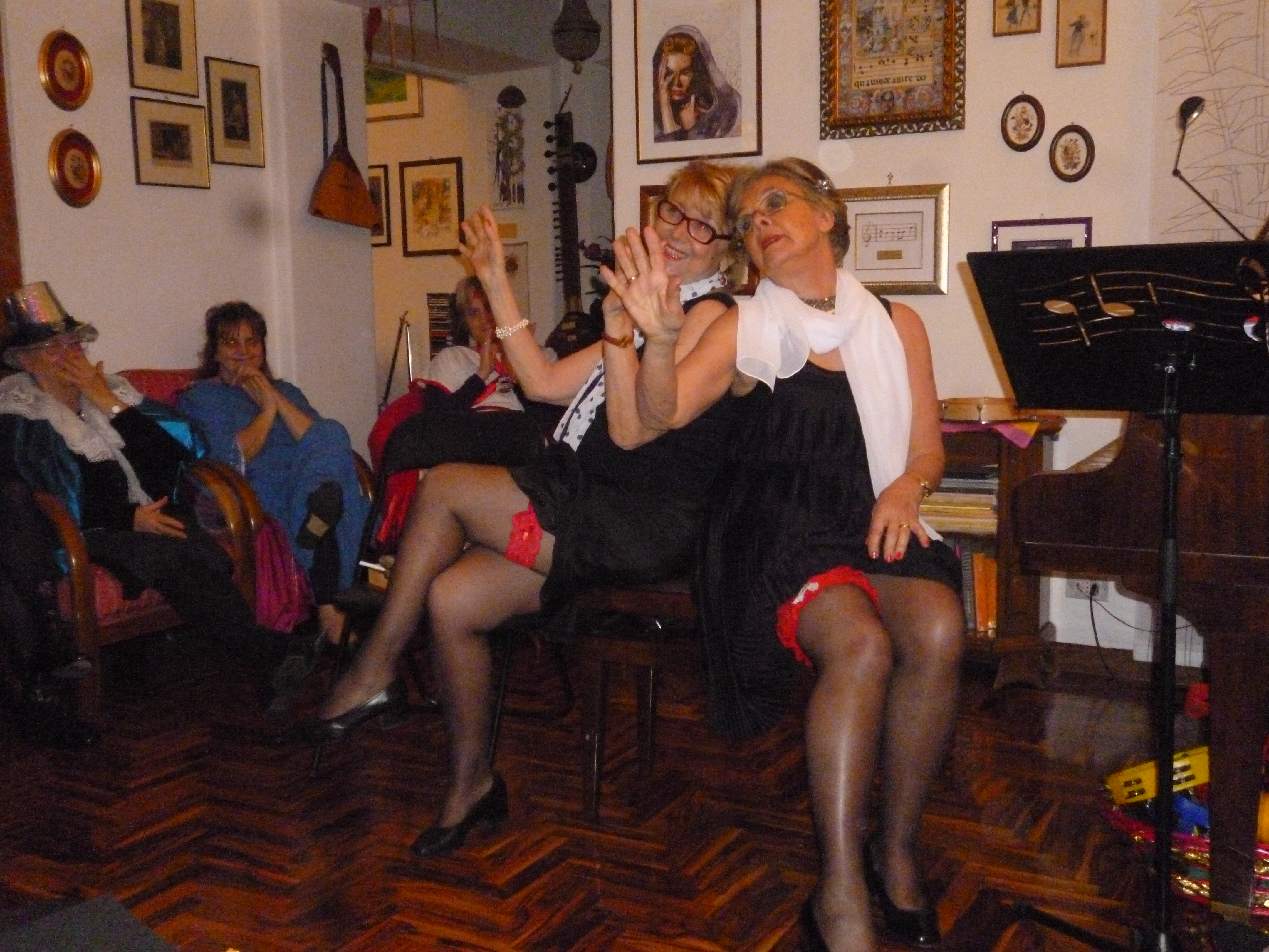 Le risate sia durante la preparazione,  la “vestizione” con calze nere dalla riga per le nostre lunghissime gambe...e  sia durante l’esibizione accompagnata dalle  fugaci visioni di giarrettiere rosse e labbra protese al bacio,  sono state tante!