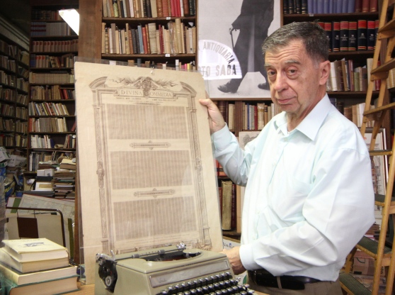 corrucciato libraio si lamenta dell’insensibilità politica verso un luogo che dovrebbe essere tutelato.
