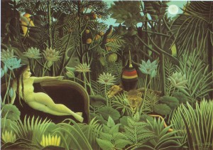 Di bellezza, di armonia, di perfezione della natura e del perché una serpeggiante malinconia mini sempre quella felicità che crediamo di possedere. Forse bisogna lasciarsi andare al Sogno come nel quadro di Rousseau, senza razionalizzare, senza pensare troppo, ma abbandonarsi e trascendere la realtà , affidarsi alla melodia della vita cosmica che fluisce senza badare a noi.