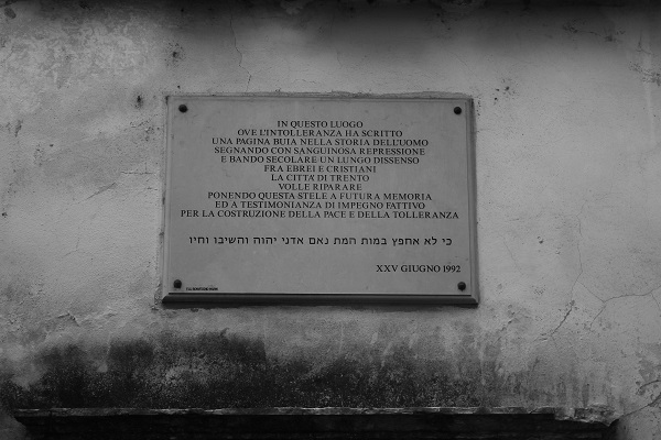 Ancora oggi, i luoghi del Simonino testimoniano l’impatto avuto da questa vicenda sulla storia della cittA� di Trento. Dove sorgeva l’antica sinagoga, a Palazzo Salvadori in via Manci, resta un’iscrizione nell’adiacente vicolo dell’Adige che riporta, in italiano e in ebraico, la riconciliazione fra la cittA� e la comunitA� ebraica. Eppure, pochi conoscono l’esatta ubicazione della “fu” sinagoga e ancora meno sono le persone che possono averla visitata. Si A? vociferato per anni dell’interesse da parte di un fondo internazionale per l’acquisto dell’immobile al fine di “restituirlo” come luogo della memoria per la comunitA� ebraica, ma non se ne A? fatto piA? nulla.