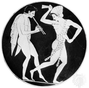 L’aulos è l’antenato greco dello strumento a fiato che i Romani chiameranno tibia: dal momento che per farlo suonare occorreva soffiare in un’ancia (la sottile lingua di canna posta nell’imboccatura), si potrebbe anche considerarlo come l’antenato dei moderni oboe e clarinetto.