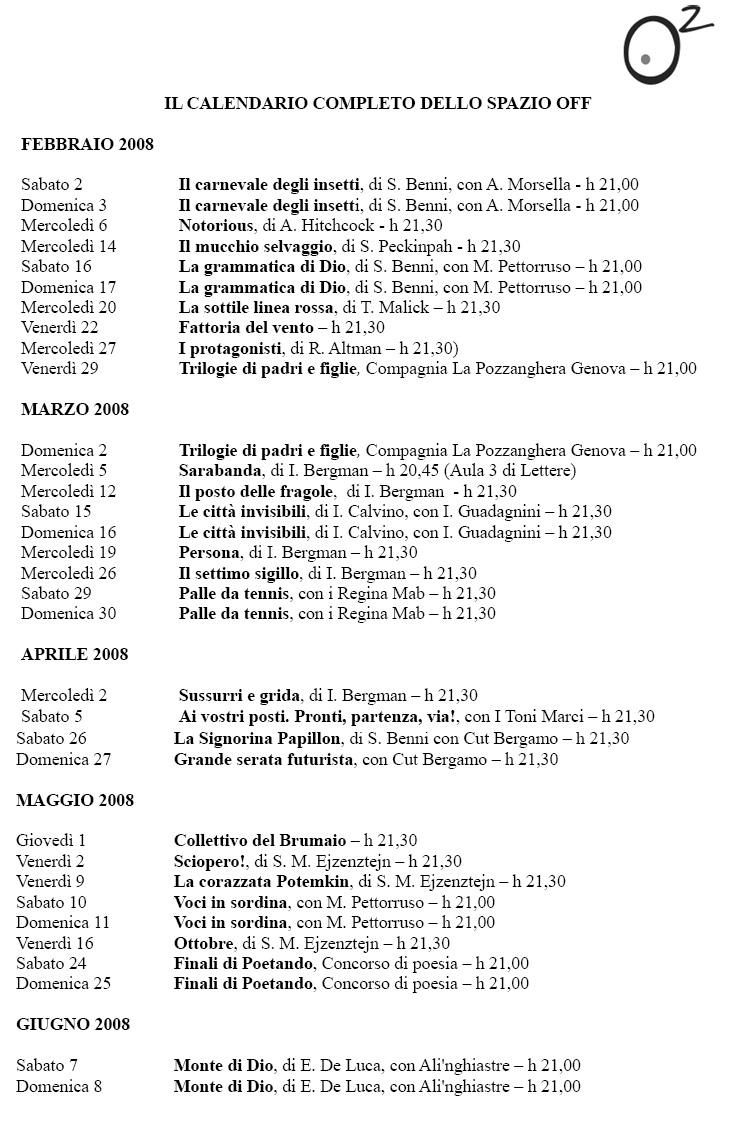 IL CALENDARIO COMPLETO DELLO SPAZIO OFF