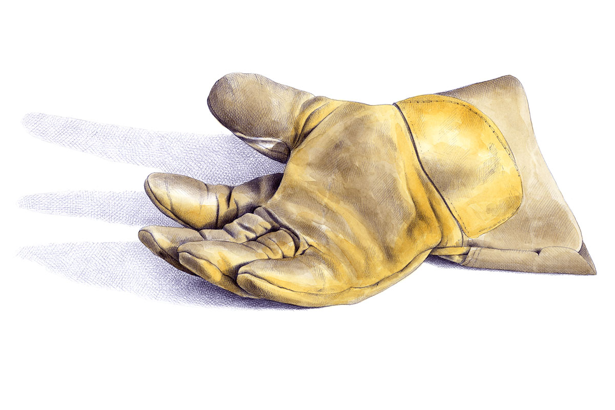 In allegato l’opera: Guanto, 2000, penna e acquerello, cm 37×15