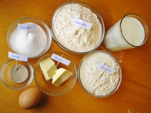 Come prima cosa, sbriciolare il lievito in una ciotola con 2 cucchiaini di zucchero e sciogliere il tutto con 100 ml. di latte intiepidito, mescolando con un cucchiaio e avendo cura che non rimangano grumi. Lasciar riposare in luogo tiepido; in superficie si formerA� una schiumetta: significa che il lievito sta “lavorando”.