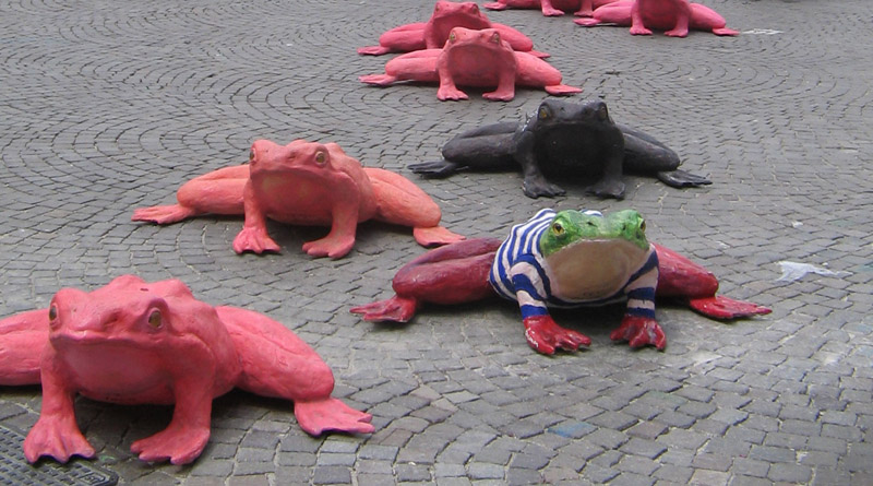 Impossibile non trovare la strada per la festa: venti rane rosa, opera d’arte dell’artista Roberto Bertazzon, indicheranno infatti in cittA� il percorso, invitando a fare un salto al museo doveA�ad accogliere i visiatori sarA� l’allegria e la simpatia di dueA�Trampolieri.