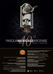 Da giovedA� 22 marzo a domenica 7 aprile 2013 avrA� luogo la 40esima edizione della Pasqua Musicale Arcense, una delle rassegne musicali piA? ricche di tradizione e di significato per il territorio dell’Alto Garda, un programma di concerti straordinario, che vedrA� impegnate formazioni locali e non.