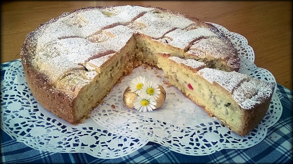 La pastiera comincia a prendere forma… Prelevare l’impasto dal frigo e lavorarlo brevemente stendendolo con il mattarello ad uno spessore di circa mezzo centimetro; con lo strato ottenuto rivestire una tortiera del diametro di 26 centimetri, versarvi all’interno il ripieno di grano e ricotta e ricoprirlo con delle strisce di impasto.