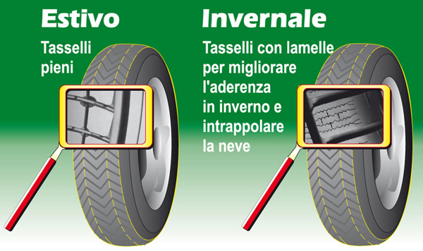 Riescono a riscaldarsi anche con il freddo perchA� sono piene di speciali “lamelle” che durante il rotolamento si flettono e si toccano tra loro, pertanto, per motivi meccanici, aumentano la propria temperatura ( avete presente quando con la lingua si avvicinava al ghiacciaia del frigorifero e si rimaneva attaccati? Le gomme termiche funzionano allo stesso modo). Inoltre per via delle lamelle la neve viene “imprigionata” dal pneumatico e quindi grazie al contatto neve-neve si riesce ad aumentare l’aderenza. Al contrario le gomme estive hanno i tasselli “pieni” e quindi non riescono a fare presa sulla neve scivolando.