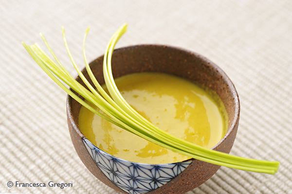 Faccio stufare, a pentola coperta, 70 gr di porri tagliati a fettine con 2 cucchiai di acqua ed un cucchiaio scarso di olio. Sciolgo 1/2 cucchiaino di curcuma in 80 gr di latte vegetale (io ho usato soia) ed aggiungo il liquido ai porri. Lascio cuocere per 5-10 minuti a pentola coperta. Frullo il tutto ed alla fine aggiungo il sale, un pizzico di pepe ed un cucchiaino abbondante di yogurt di soia. Questa salsa A? deliziosa anche sul pane.