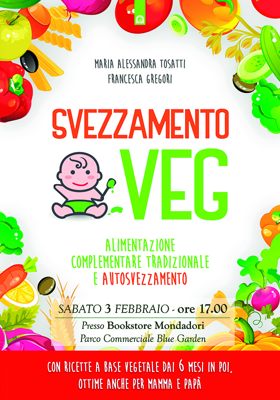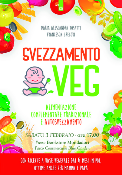 Vi aspetto sabato prossimo 3 febbraio a Riva del Garda presso Bookstore Mondadori – Parco Commerciale Blue Garden- alle ore 17 per parlareA�del mio ultimo libro “Svezzamento Veg” scritto insieme alla dott.ssa Maria Alessandra Tosatti. Ci sarA� qualche assaggio!