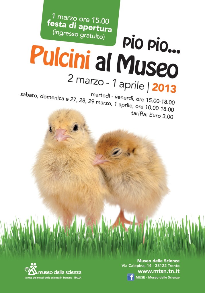 Al Museo delle Scienze dalle 10.00 alle 18.00 si potranno visitare i piccoli pulcini della��iniziativa a�?Pio pioa�� pulcini al museoa�?, al Museo della��Aeronautica Gianni Caproni, alle 15.00 si terrA� una a�?Visita guidata alla collezione aeronauticaa�?, mentre alle 16.00 il laboratorio per bambini a�?Voliamo tra le nuvolea�?.
