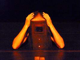 La performance fa parte del progetto teatrale internazionale Lenz e trae ispirazione dai testi di J. M. R. Lenz, G. BA?chner, P. Shneider, assieme a testimonianze e scritti di alcuni operai intervistati dalla compagnia. In una scena composta da elementi metallici, l’eremita contemporaneo pone il suo rifugio, fuggendo da una societA� che riduce l’essere umano ad una macchina artificiale e che soffoca la libertA� creativa dell’artista. Il performer, interagendo con video proiezioni, musiche e suoni, appositamente composti, spinge il proprio corpo all’estremo per reagire alla condizione di alienazione ed oppressione nella quale A? imprigionato. Diventa come un angelo, con ali di metallo, capace di portare un fardello, uno scudo, una maschera senza perA? nascondere l’essenza del proprio animo che si rivela attraverso la poesia.