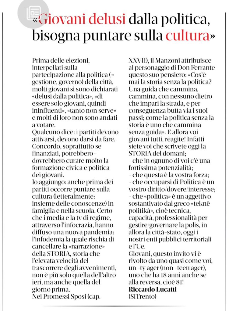 pubblicato da: Riccardo Lucatti - 13 Dicembre, 2025 @ 2:45 pmMia lettera odierna al Direttore del quotidiano ilT del trentino, Simone Casalini.