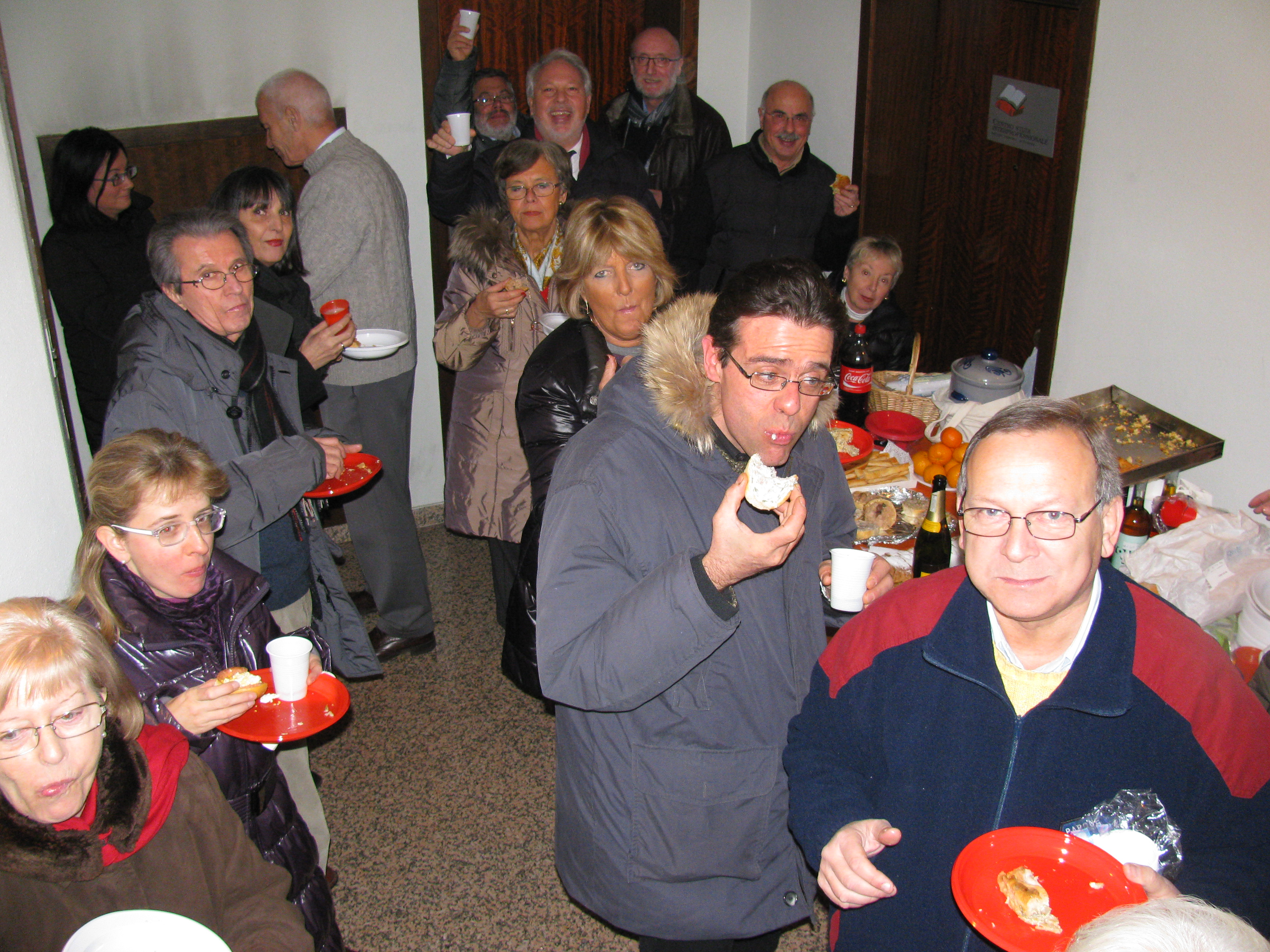 Ma c’è dell’altro. Queste stesse persone, fra una portata salata ed una dolce (tutto il catering è offerto dalle rispettive Signore) parlano, si confrontano, comunicano. Su argomenti “frivoli†e “seriâ€. La comunicazione, questa grande assente dei nostri tempi. In genere infatti, quando va bene, c’è informazione unidirezionale: io ti dico una cosa, e tutto finisce lì. In casi rari abbiamo la fortuna di partecipare a informazione bidirezionale (io ti dico una cosa, tu ne dici una a me, ma poi ognuno resta della sua idea e le due “cose†non si confrontano in un dibattito). In queste serate invece, sarà per l’informalità del luogo (l’androne delle scale) o perché il luogo in cui ci si ritrova è familiare e protettivo per tutti, o perché un buon bicchiere di spumante “aiutaâ€, le persone si aprono alla “comunicazione†cioè alla communis actio, all’azione comune.