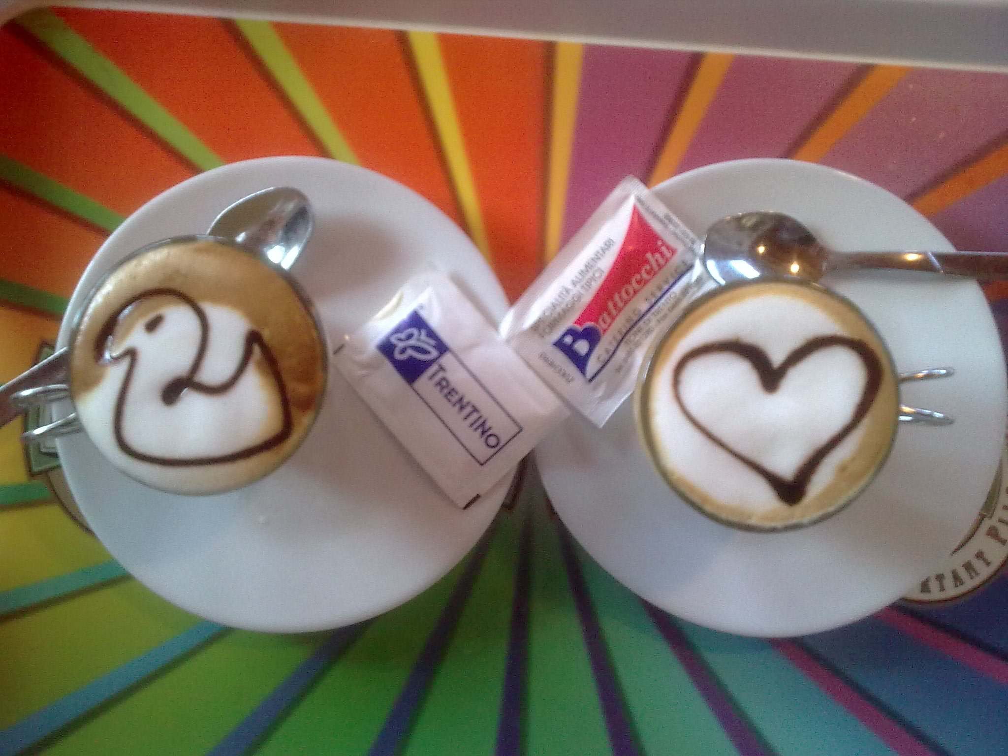 Oggi ero con un amico di Riva, Giorgio per un caffè, anzi due. Due caffè, due piccole opere pittoriche. La titolare, ogni volta, crea, si inventa un “dipinto†nuovo e lo esegue a mano libera, direttamente sulla “tela†colore (e sapore) caffè. Dopo la sosta, gustate le due opere d’arte, via … di nuovo in pista, sino alla prossima!