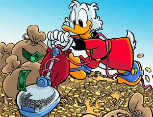Nella seconda “novella†rileggiamo Walt Disney, Boccaccio e Dante. Walt Disney, il suo Paperon de Paperoni seduto sulla montagna d’oro, ignaro, intento a spolverare le sue montagne di “liquido”, mentre da sotto la Banda Bassotti succhia monete su monete. Boccaccio, nella esaltazione dell’intelligenza, della furbizia, dell’inganno, “premiato†dall’arricchimento (e dalle soddisfazioni sessuali, n.d.r.) alla faccia dei principi morali). Dante, il quale, come ci ha riletto Benigni alcune sere fa a RAI 2, nella dura condanna che infligge nel suo Inferno ai truffatori. Alla fine però in Erodoto tutti si accordano, derubati (il Tesoro del re, il nostro Ministero del Tesoro, n.d.r.) e i ladri … attuali? Quali? Fate voi …