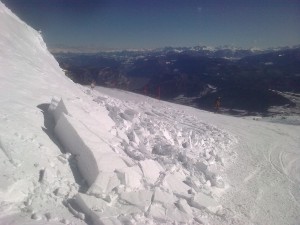 Inizio la discesa “controventoâ€, cioè verso nord, verso Fai della Paganella, e dopo pochi metri scavalco una piccola slavina. Slawinengefahr, pericolo valanghe livello “4â€, cioè “forteâ€, stante le forti nevicate su neve già consolidata, l’innalzamento della temperatura e il forte vento. Ok, recepito. Restiamo in pista. Tanto oggi sciare in pista è come fare il “fuori pistaâ€. Ho sci da pista, Salomon 1,70, raggio di curvatura 14 m., ma oggi su un solo palmo di fresca vanno benissimo lo stesso. Scio intensamente tre ore … poi a casa, a pranzo e a scrivere i miei post. Domani? Si replica, anche perché le piste saranno ben battute.