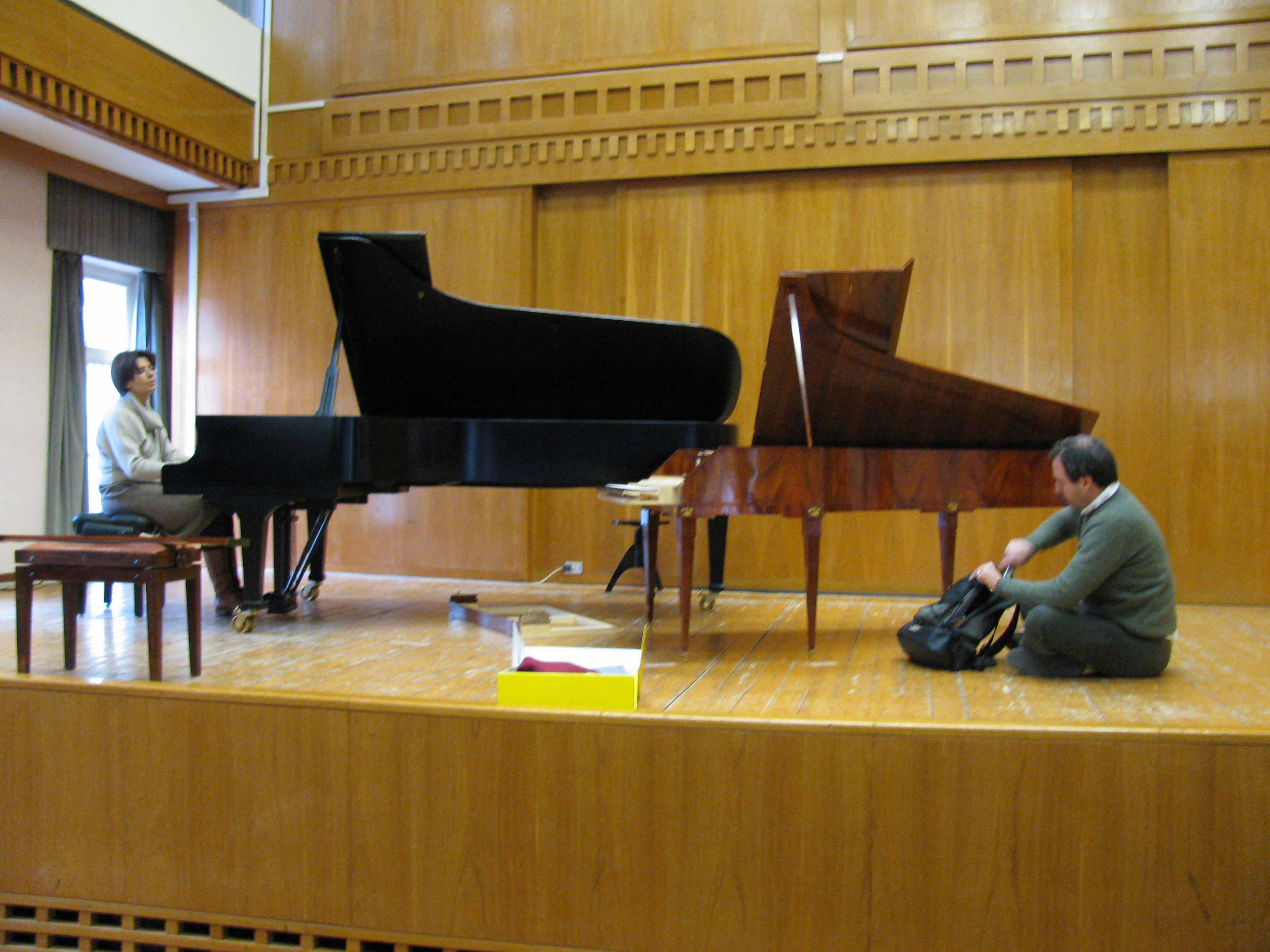 l tutto, integrato dall’intervento di Marco Barletta, restauratore e pianista, il quale ha parzialmente smontato lo strumento per farci vedere come si accorda, per mostrarci il meccanismo, i martelletti, lo “scappamento” (che libera la corda dal martelletto, immediatamente dopo la percussione).