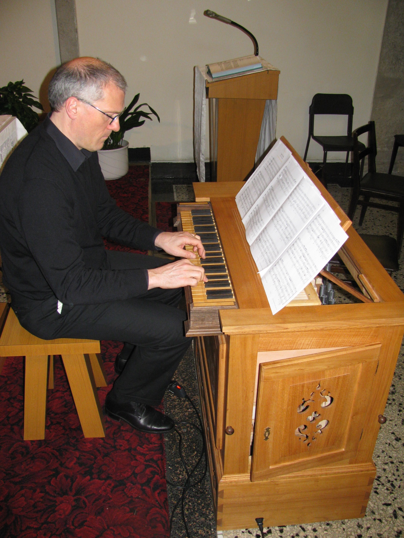 I brani eseguiti, tutti splendidi … chi ha apprezzato soprattutto il “nostro†Bonporti (Sonata X – Ciacona da Sonate per due violini e b.c. op. 2 del 1703). Io ho particolarmente gustato Handel, Concerto per Arpa o Clavicembalo o Organo op. 4 n. 6 in Sib maggiore del 1736. Perché? Perché si tratta di un brano di cui ho il disco, che conosco, e che quindi per me è stato di più facile comprensione, assorbimento, riconoscimento e rapimento: piccole grandi soddisfazioni di un musicofilo principiante.